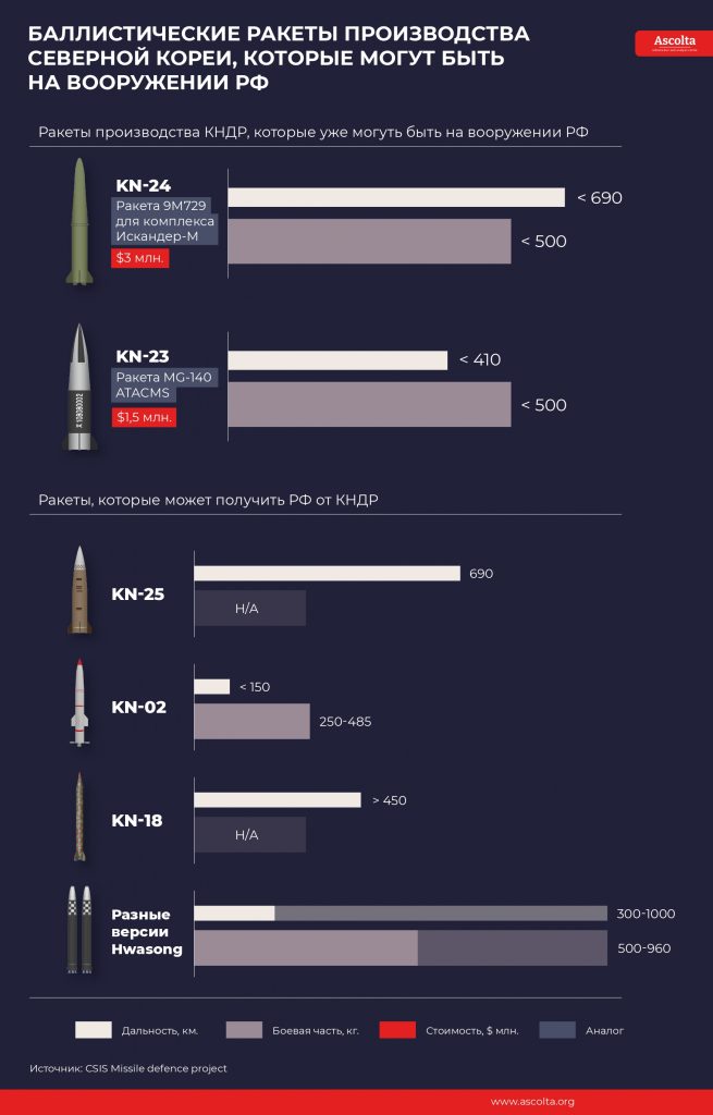 Несмотря на то, что Вашингтон официально не заявляет о каких именно ракетах может идти речь, Джон Кирби в своем заявлении отметил, что они имеют дальность около 900 км (550 миль) и продемонстрировал график, на котором, по всей видимости, показаны ракеты KN-23 и KN-24. Также ряд источников Ascolta сообщают, что речь может идти о более широком разнообразии ракет, потенциально готовых к поставкам в Россию (однако подтверждения их передачи получено не было).
