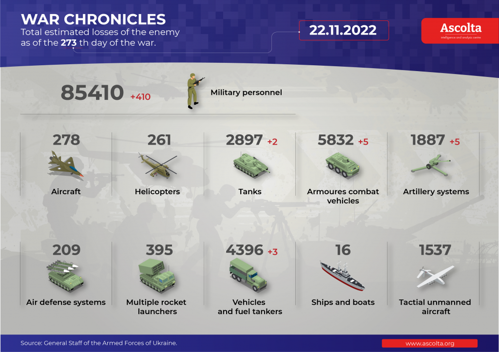 The occupying forces continue to suffer losses. So, in the village of Kalanchak of the Kherson oblast, the local hospital does not have enough beds to accommodate the wounded invaders. About 40 wounded occupiers were brought to the settlement of Velyki Kopani during the previous day.