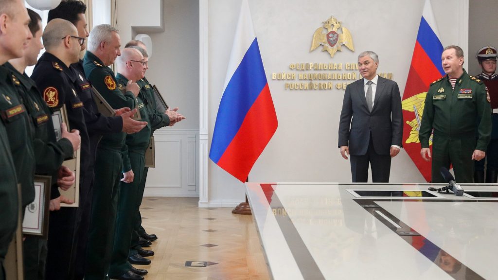 On Wednesday, April 19, Chairman of the State Duma of the Russian Federation Vyacheslav Volodin met with the head of the Russian Guard, during which the parties discussed issues of legislative support for the activities of the Russian Guard, primarily in connection with the fulfilment of tasks in the so-called “Northern Military District” zone. In turn, Volodin stressed that “soldiers and officers, as well as their families, must be provided with everything necessary. All factions of the State Duma are united in this.” He also presented awards of the State Duma to distinguished servicemen of the Russian Guard.