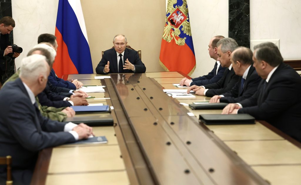 - After his address, Putin met with law enforcement agency representatives. The meeting was attended by Prosecutor General of the Russian Federation Igor Krasnov, Interior Minister Vladimir Kolokoltsev, Defense Minister Sergei Shoigu, FSB director Alexander Bortnikov, head of the National Guard Viktor Zolotov, FSO director Dmitry Kochnev, head of the Investigative Committee Alexander Bastrykin, and head of the Kremlin administration Anton Vaino.